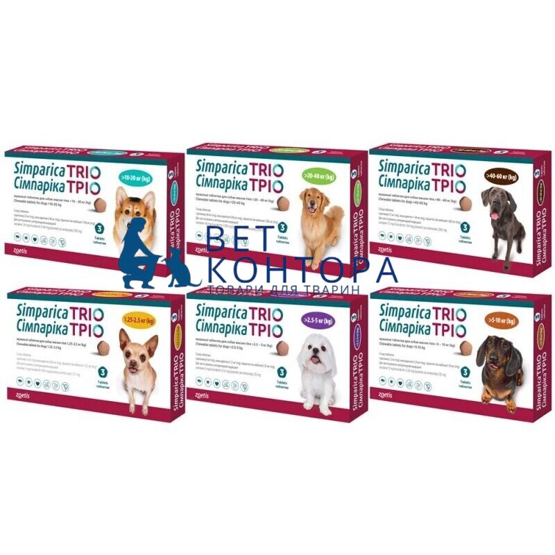 Симпарика ТРІО для собак 10-20кг проти параз. таб. 3таб/упак