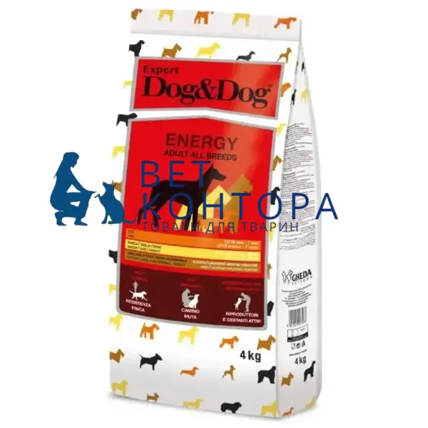 10254Gheda Dog&Dog Expert Energy з куркою- повнораціонний сухий корм для збалансованого харчування дорослих собак всіх порід з підвищеною фізичною активністю та під час фази активних тренувань.