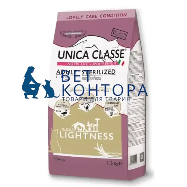 Сухий корм Unica Classe Adult Sterilized Lightness Dry - для дорослих, стер. котів (качка) 1,5kg