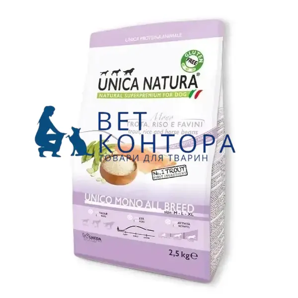 Сухий корм Unica Natura Unico All breed Mono - для собак усіх порід, монобілковий (форель) 2,5kg