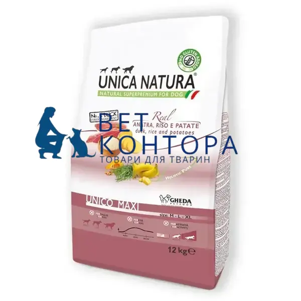 Сухий корм Unica Natura Unico Maxi - для собак великих порід (качка, рис та картопля) 12 kg