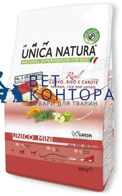 Сухий корм Unica Natura Unico Mini - для собак малих порід (оленина, рис та морква) 800g